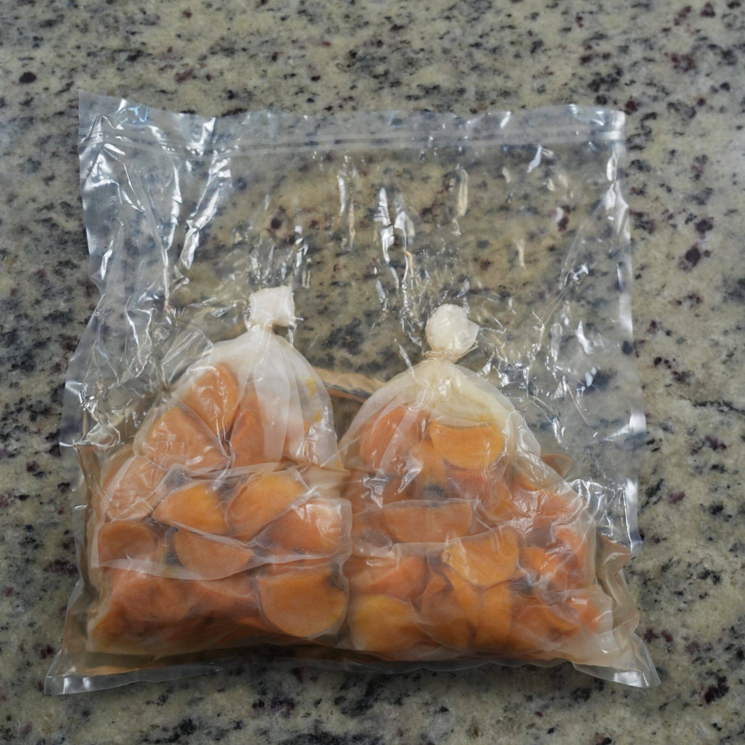 - For improved clarity, portion fruit into large tea bags and place into a chamber vacuum bag.